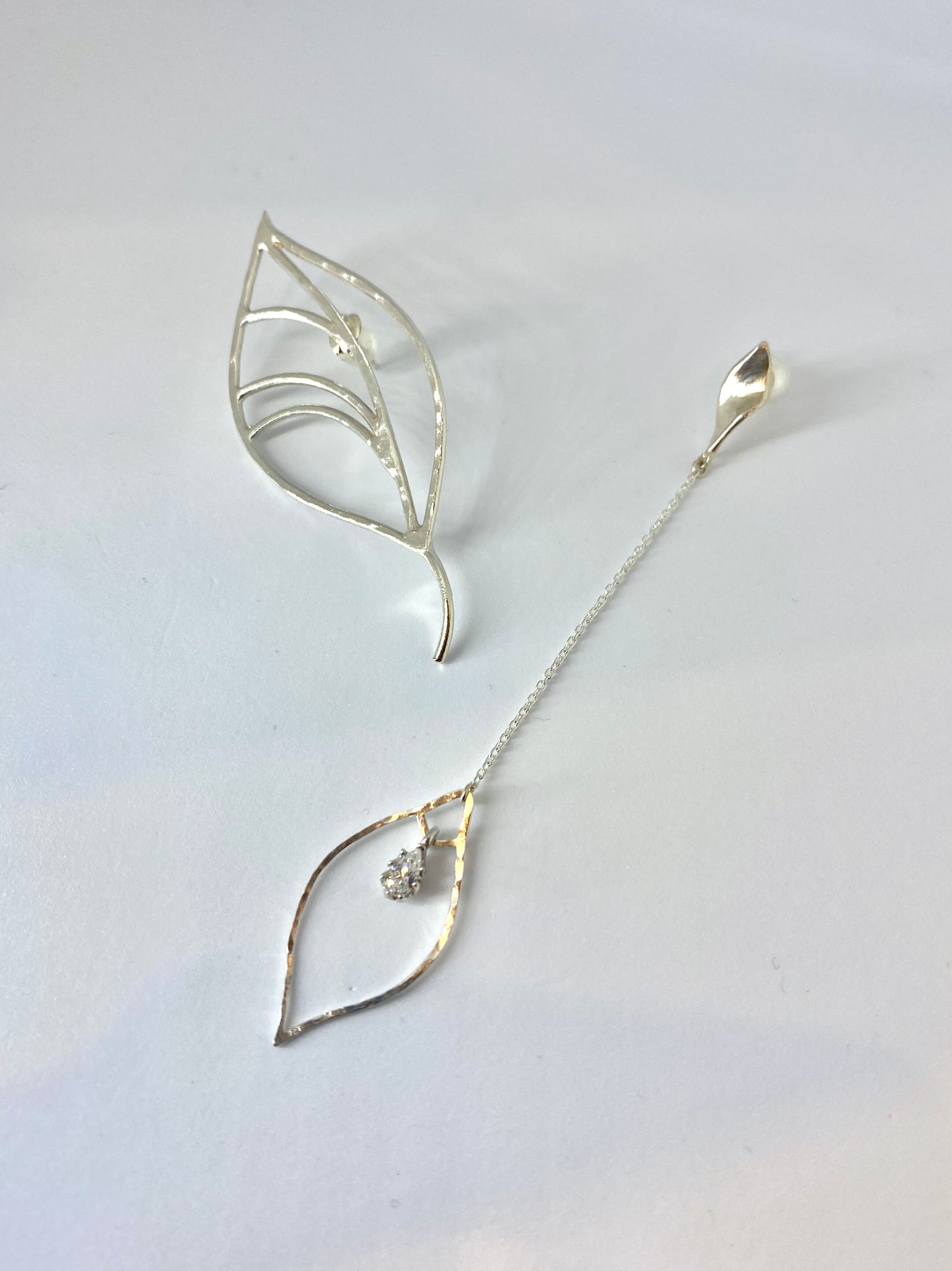 揺れ感のある長めのピアスで、下の方にはキュービックジルコニアがキラリ。こちらはペアでご購入頂くことも多いピアスで、ペアの場合は数量を2にしてご購入下さい。