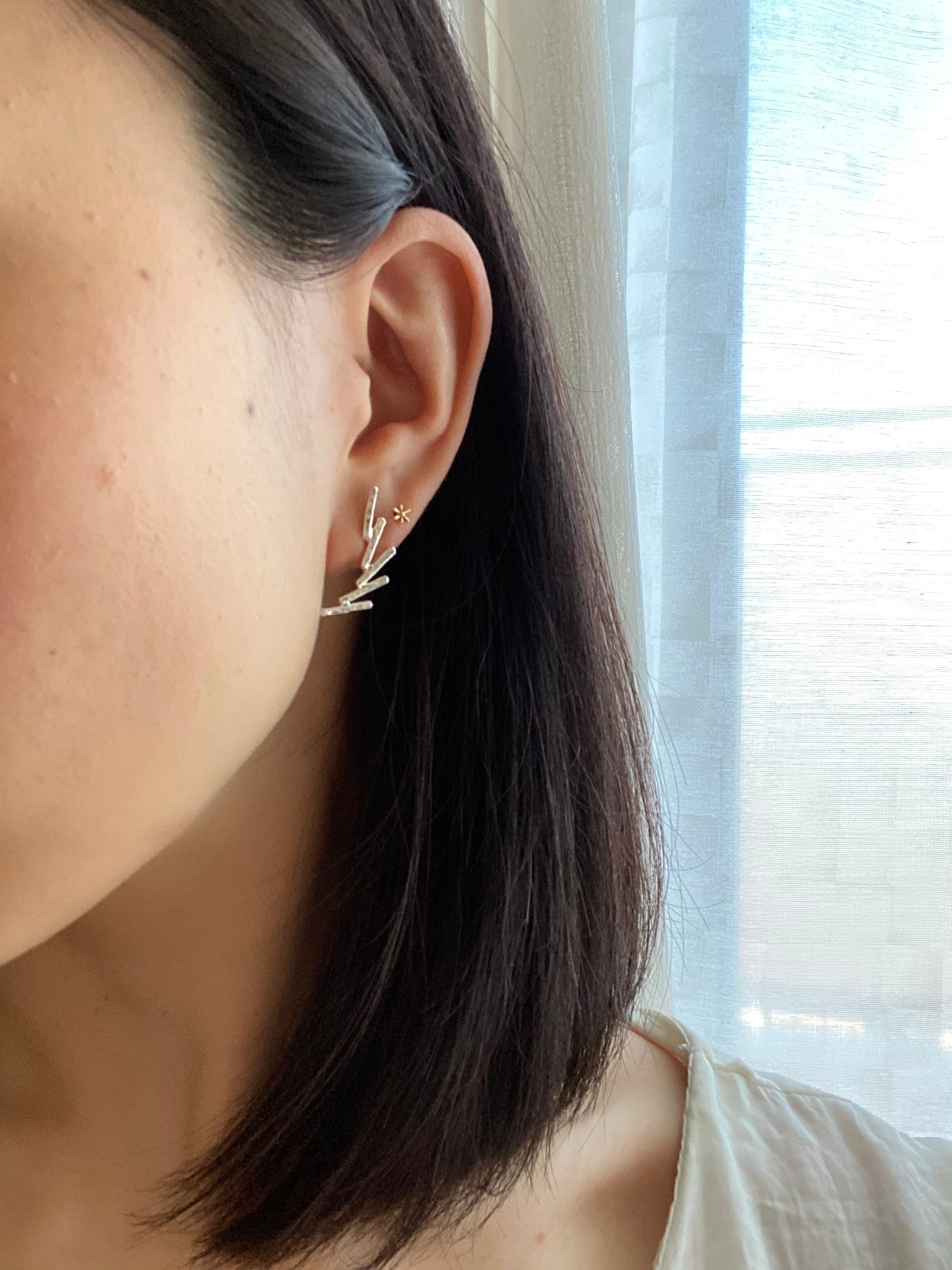 dはtwig-mini-シリーズの中でも1番人気のピアスです。耳たぶに柄が入るようなデザインで、輪郭に沿ってくれる為、オシャレで且つお顔がスッキリとして見えるピアスになります。